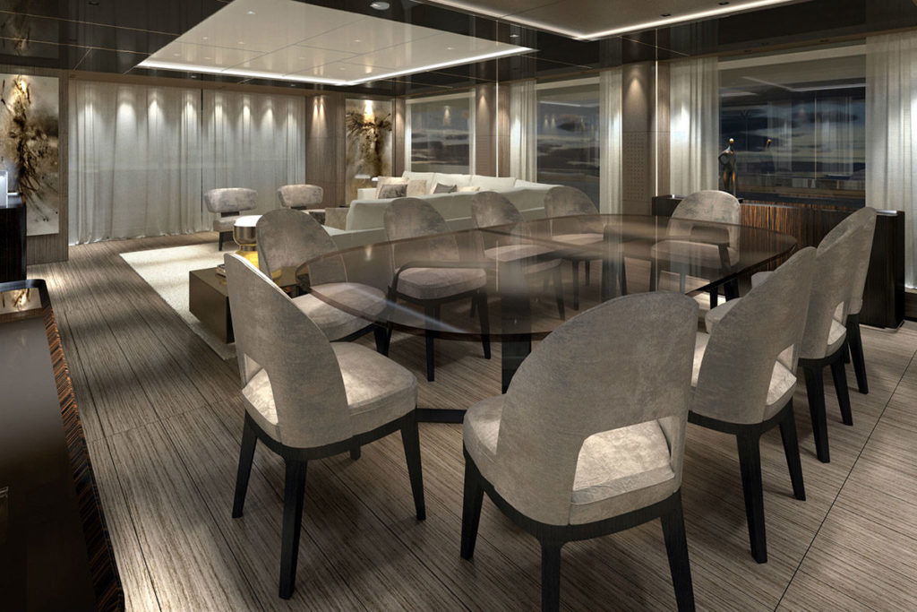 Custom Line 106’ is the new jewel in the planing series. Following suite with the Custom Line 120’, it is the second model designed by Milan-based naval architect Francesco Paszkowski, working in close collaboration with the Strategic Product Committee and Ferretti Group Engineering Department. Custom Line 106’ is the extraordinary result of a creative Italian approach that transfers the languages and styles expressed by eclectic and complementary design universes to the maritime environment.