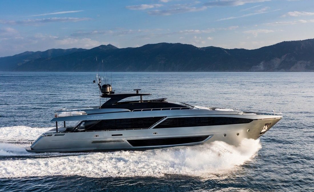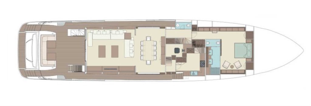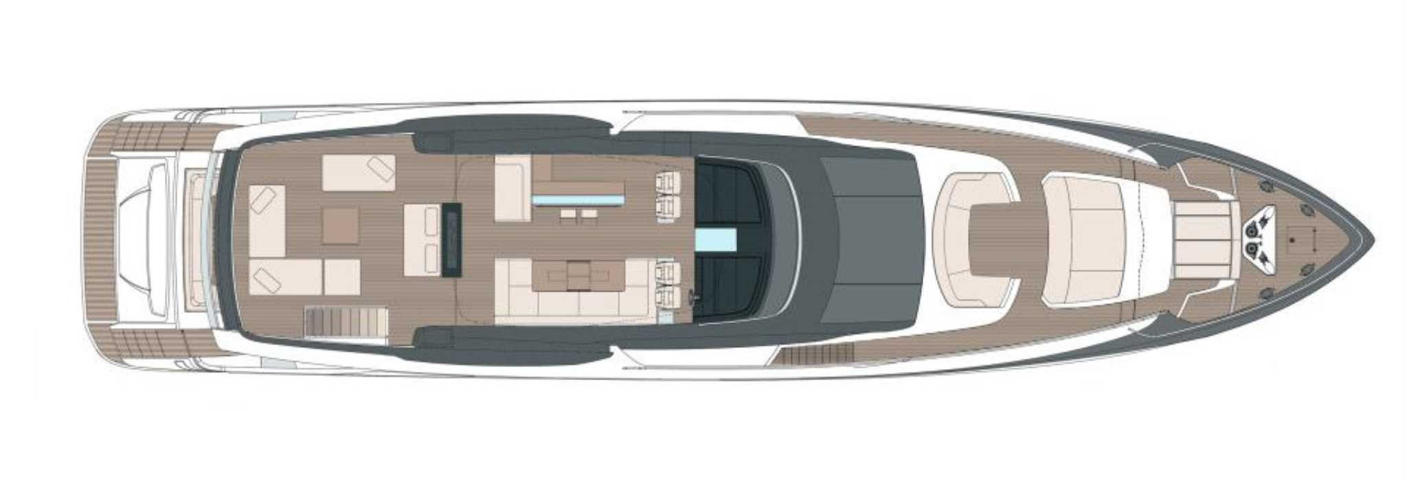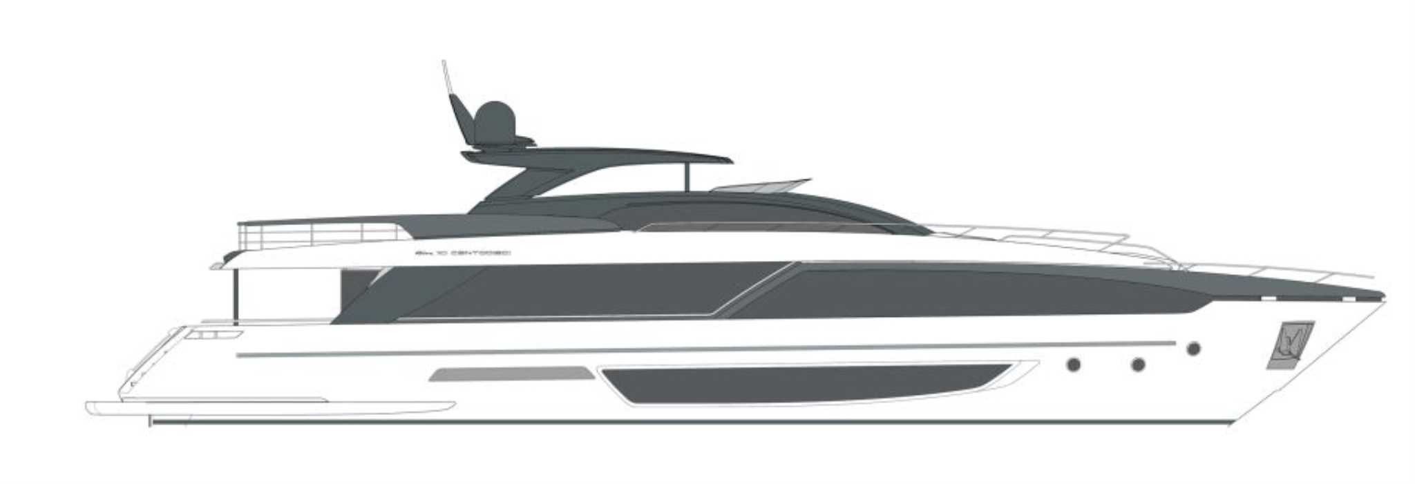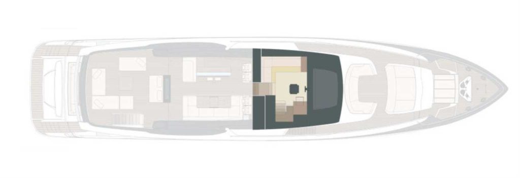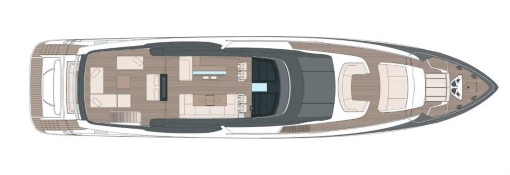 The Riva 110 ‚project, Riva’s new fiberglass flagship, is a promise of style, design and performance to reach levels never seen before. Through the collaboration between Officina Italiana Design, the studio founded by Mauro Micheli together with Sergio Beretta, the Ferretti Group Product Strategy Committee, and the Engineering Department, Riva 110‘ promises to be a magnificent and beautiful flybridge yacht, as well as larger than ever before. The completely renewed hull design measures almost 110 feet in overall length, with a beam larger than 11 feet. The exterior design further builds on the flowing lines of the 100′ Corsaro. Characterized by a super sporty profile, the Riva 110′ exhibits a large window in the hull with integrated porthole and, on deck, a long glass ceiling that stretches along the entire living room and it is formed by glass framed in stainless steel. The aft is equipped with the innovative Submersible Hatch, the exclusive movement system that Ferretti Group has patented, which has already convinced experts and triumphed during the Boat Builder Awards 2016 in Amsterdam.